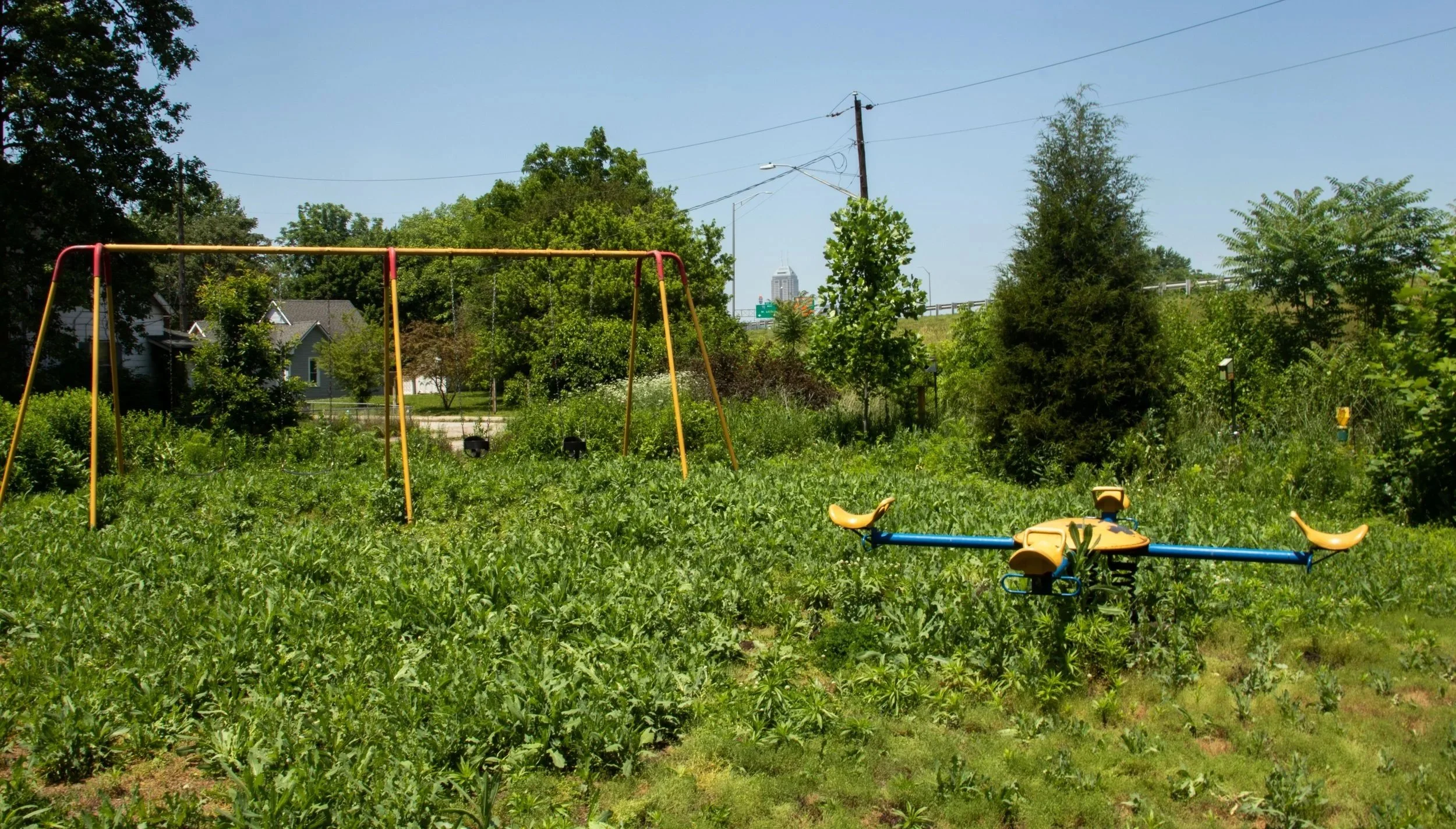 Ringgold Park butts up against the I-65 which separates the Bates-Hendricks and Fountain Square neighborhoods. Bates-Hendricks residents are collaborating with Keep Indy Beautiful and Mader Design to revitalize the park, which had been largely neglected by the construction of I-65.