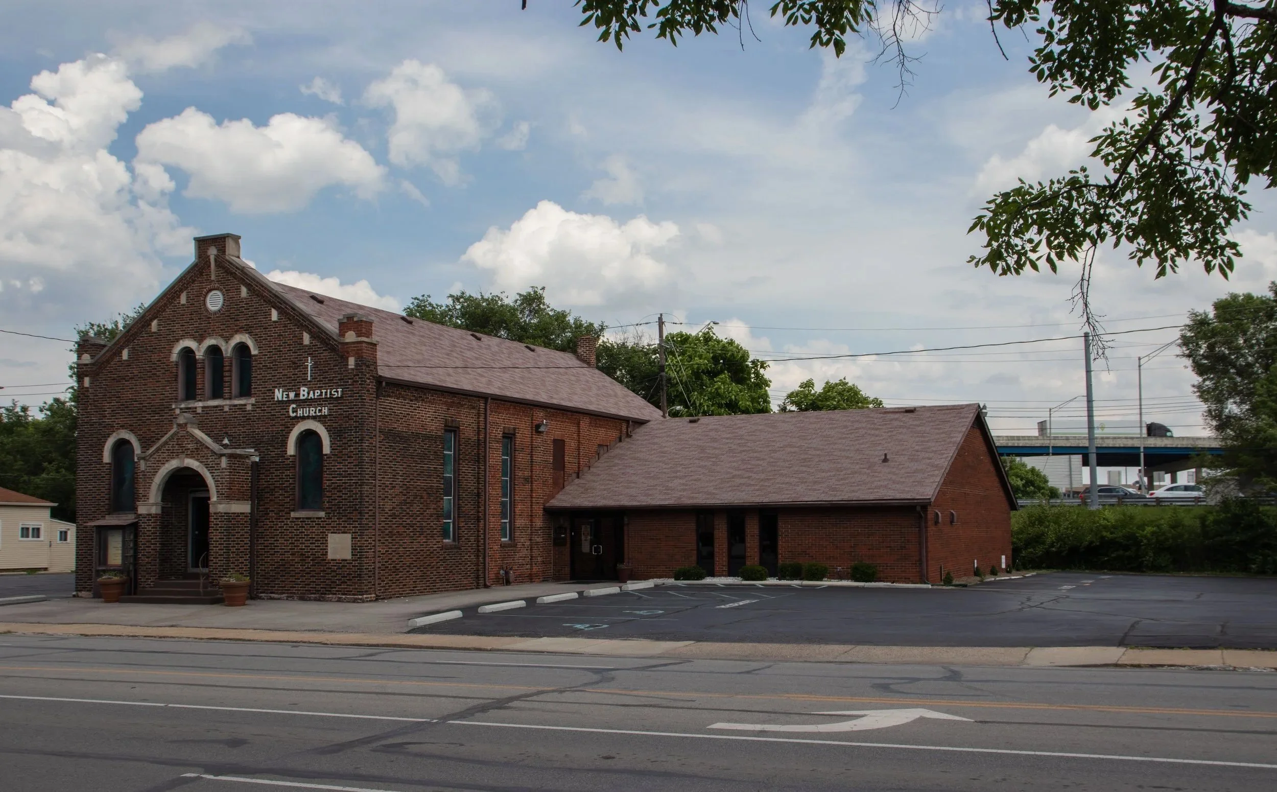 The North Leg of the Inner Loop hovers behind the Indianapolis New Baptist Church in the former Ransom Place Neighborhood. When highway construction began, the church, and Crispus Attucks High School across from it, were stranded at the edge of a community.