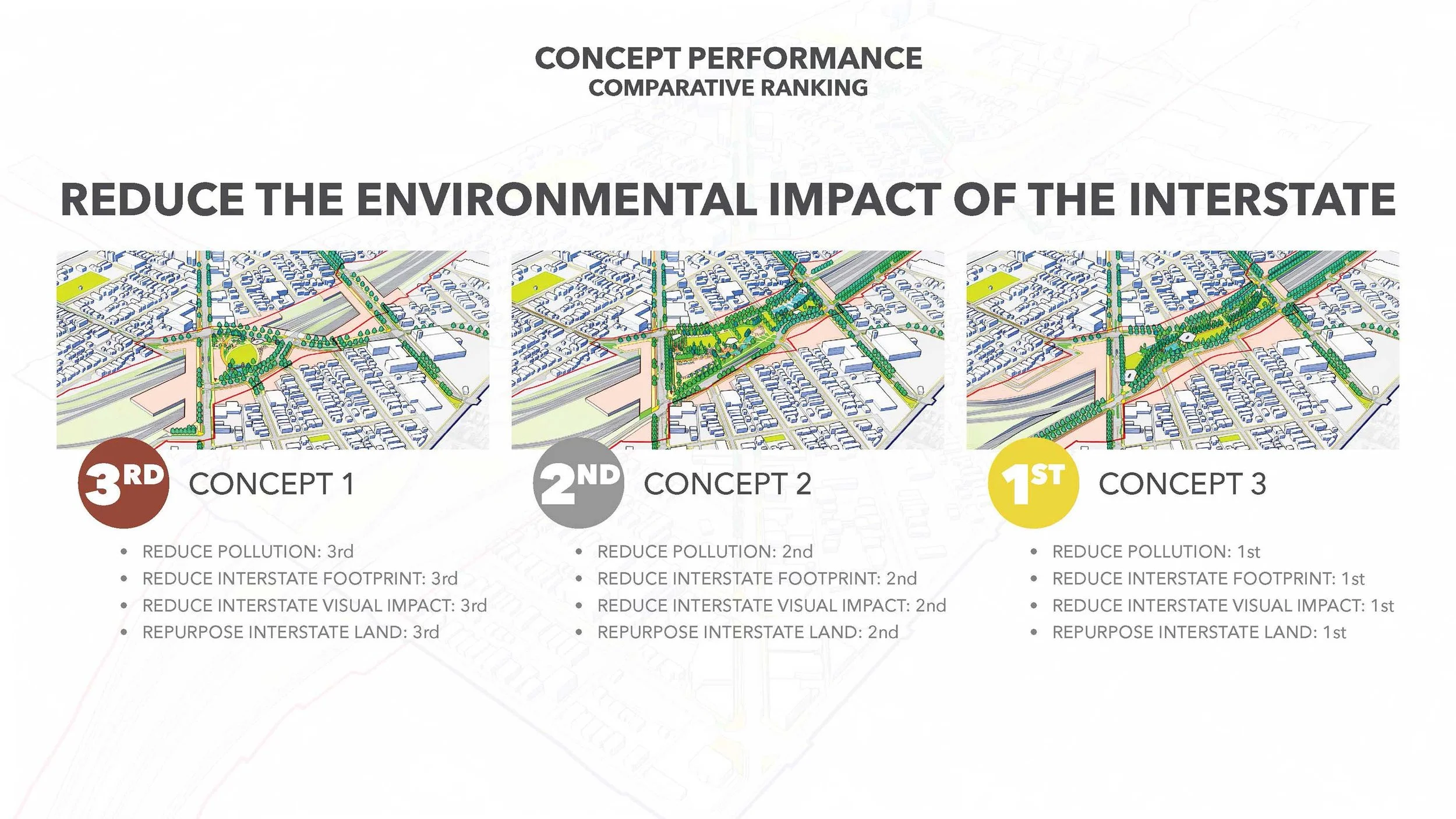Reduce noise and air pollution, reduce the interstates’ visual impacts; repurpose interstate land for more productive uses.